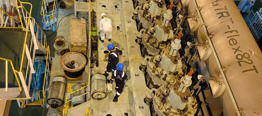 Maris Bahrain capabilities as an expert in comprehensive engine services are unquestioned. As an engine specialist, Maris Bahrain capabilities cover virtually all makes and models of larger bore 4‑stroke and 2‑stroke engines found in the marine market. Maris Bahrain engine service model is based on deploying highly trained teams or riding crews to effect the engine repair either alongside or on voyage to minimize the impact on schedules. Our teams travel with all tools required to overhaul components onboard, negating the requirement to send components ashore.